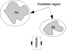 Virtual fixtures can be either guiding virtual fixtures or forbidden regions virtual fixtures. A forbidden regions virtual fixture could be used, for example, in a teleoperated setting where the operator has to drive a vehicle at a remote site to accomplish an objective. If there are pits at the remote site which would be harmful for the vehicle to fall into forbidden regions could be defined at the various pits locations, thus preventing the operator from issuing commands that would result in the vehicle ending up in such a pit.[16][17][18]