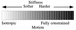 The stiffness of a virtual fixture can be soft or hard. A hard fixture completely constrains the motion to the fixture while a softer fixture allows some deviations from the fixture.