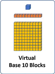 Virtual math manipulatives are visual representations of concrete math manipulatives, accessed digitally.[1] These virtual manipulatives are modelled after concrete ones used in classrooms. They physically represent mathematical concepts and can be used to support students' understanding of mathematical concepts with concrete visuals.[2][3]