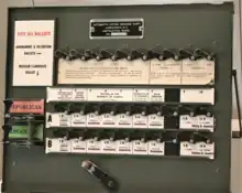 The psephograph was patented by Italian inventor Eugenio Boggiano in 1907.[8] It worked by dropping a metal token into one of several labeled slots. The psephograph would automatically tally the total tokens deposited in each slot. The psephograph was first used in a theatre in Rome, where it was used to gauge audience reception to a play: "good", "bad", or "indifferent".[9]