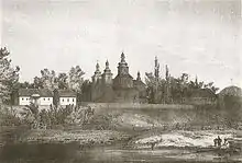 Nothing is known about the youth of Vaišvilkas as he entered historical sources only in 1254 when he made a treaty, in the name of his father King Mindaugas, with Daniel of Halych-Volhynia. In the treaty, Halych-Volhynia transfers Black Ruthenia with center in Navahrudak to Lithuania. To solidify the treaty, Daniel's son Shvarn was married to Vaišvilkas' sister.[7] Vaišvilkas was appointed as duke of some of these lands. After Vaišvilkas was baptized in a Greek Orthodox rite, he was drawn to religious life so much that he transferred his title and lands to Roman Danylovich, son of Daniel of Halych.[7] He founded a monastery traditionally identified with Lavrashev Monastery on the bank on the Neman River and entered it as a monk.[8] He set off on a pilgrimage to Mount Athos in Greece. However, he did not reach the destination due to wars in the Balkans and returned to Navahrudak.[7]