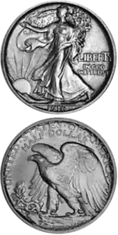 The Walking Liberty half dollar is a silver 50-cent piece or half dollar coin that was issued by the United States Mint from 1916 to 1947; it was designed by Adolph A. Weinman, a well-known sculptor and engraver.