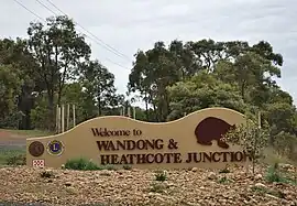 Wandong /ˈwɒndɒŋ/ is a town in Victoria, Australia. The town is about 50 kilometres (30 mi) north of the state capital, Melbourne, on the Hume Highway. It adjoins the town of Heathcote Junction, and at the 2016 census, the two towns had a population of 1,340.[1] The main centre nearest Wandong is Kilmore.
