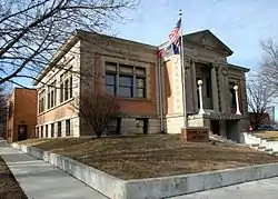 The Waterloo Public Library is a historic building located in Waterloo, Iowa, United States. The public library was established there in 1896.[2] It operated out of two rented rooms, one on the east side of the Cedar River and other on the west side. The Carnegie Foundation agreed to grant the community $21,000 to build this building and a similar amount for the east side branch on April 11, 1902.[3] Waterloo architect J.G. Ralston designed both buildings in the Neoclassical style. They were both dedicated on February 23, 1906. The single-story brick structure has a projecting entrance pavilion capped with a triangular pediment that is supported by Ionic columns. Also noteworthy are the corner piers that feature bands of brick squares set into the stone.[4] In 1977 voters in Waterloo approved a $3,650,000 bond referendum to renovate the city's 1938 post office and federal building to house the library.[2] The post office vacated the building in 1979 when it relocated. The old library building was listed on the National Register of Historic Places in 1983.[1] It now houses law offices.