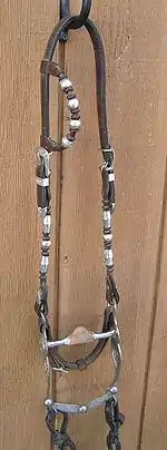 A current trend seen in nearly all breeds requires a horse to perform with an extremely loose, draped rein at all times. Western pleasure horses have always traveled on a fairly loose rein, but in recent years the visible "drape" in the rein has become exaggerated.[6] However, it requires time, good riding ability, and careful training to correctly teach a horse "self carriage," particularly to slow or stop by responding to only a rider's use of seat position (and sometimes voice) without tightening the reins.[7] Thus, an alternative method of training to slow a horse down without the use of the reins gave rise to a new, highly controversial, technique known as the "spur stop," an unconventional method used by some trainers to train horses to slow down and stop when spur pressure is applied.