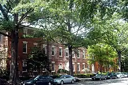 The four row houses of Wheat Row were used for residences until 1939.[lower-alpha 3][22] John Neligh, the director of industrial crafts at Barney Neighborhood House, owned 1315 4th Street. Barney Neighborhood House served as a home for poor women and worked to improve cultural awareness among the working class.[23] Established in 1904, Barney Neighborhood House occupied the Duncanson-Cranch House.[24] When Neligh died in 1939, he left his home to the Barney Neighborhood House,[25] which renovated it and used it as a neighborhood art gallery known as Rhoads House.[26] That same year, 1317 4th Street was purchased by the National Craft Training Center, a newly established organization which taught handicrafts to poor and working-class girls.[27] By May 22, 1941, 1315 4th Street housed the Rhoads Service Men's Club, a service organization which provided free and reduced-cost entertainment to members of the United States military.[28] In late 1941, Mary Adams purchased 1319 4th Street, renovated it, and donated it to the Barney Neighborhood House in memory of her mother. The organization used it as a day care facility, serving 30 children (double the capacity available in its old location).[29] By 1950, Barney Neighborhood House had come into possession of 1317 4th Street.[25]