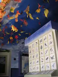 There are various displays of common animals found in some of the habitats on White Memorial Foundation property, including fields, wetlands, lakes, old-growth forests, hardwood forests, and backyard habitats. Several displays were designed by American diorama painter and designer, James Perry Wilson, who also designed dioramas for the American Museum of Natural History's Hall of Mammals.