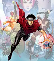 Wiccan (William "Billy" Kaplan-Altman)[1] is a fictional superhero appearing in American comic books published by Marvel Comics. The character has been depicted as a member of the Young Avengers, a team of teenage superheroes, as well as Strikeforce and New Avengers. Created by writer Allan Heinberg and artist Jim Cheung, the character first appeared in Young Avengers #1 (April 2005).[4] The character's appearance is patterned on that of two prominent Marvel superheroes, Thor and Scarlet Witch (Wiccan's mother), both of whom are members of the Avengers. Like the Scarlet Witch, Wiccan possesses powerful magical abilities which make him a key member of his superhero team.