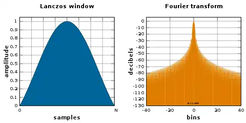 In signal processing and statistics, a window function (also known as an apodization function or tapering function[1]) is a mathematical function that is zero-valued outside of some chosen interval. Typically, windows functions are symmetric around the middle of the interval, approach a maximum in the middle, and taper away from the middle. Mathematically, when another function or waveform/data-sequence is "multiplied" by a window function, the product is also zero-valued outside the interval: all that is left is the part where they overlap, the "view through the window". Equivalently, and in actual practice, the segment of data within the window is first isolated, and then only that data is multiplied by the window function values. Thus, tapering, not segmentation, is the main purpose of window functions.