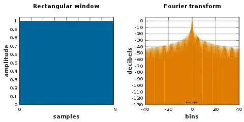The rectangular window (sometimes known as the boxcar or Dirichlet window) is the simplest window, equivalent to replacing all but N consecutive values of a data sequence by zeros, making the waveform suddenly turn on and off: