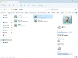 ![]() Contacts folder inside Windows Explorer in Windows 11, showing example contacts. | |