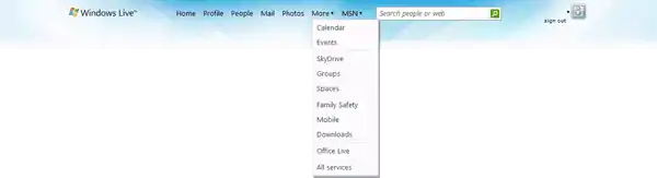 ![]() Screenshot of Windows Live Home, which served as a central location to access all Windows Live services | |