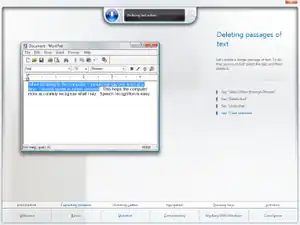![]() The tutorial for Windows Speech Recognition in Windows Vista depicting the selection of text in WordPad for deletion. | |