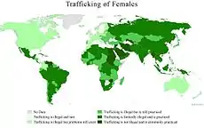 Human trafficking refers to the acquisition of persons by improper means such as force, fraud or deception, with the aim of exploiting them.[62] The Protocol to Prevent, Suppress and Punish Trafficking in Persons, especially Women and Children states,[63]