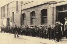 Boys queuing for the Wood Street soup kitchen, ca. 1900