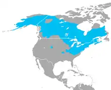 Geographic range of the wood frog in North America (in blue)
