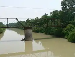 The Pratt truss/swing truss bridge was built in 1916. The bridge was abandoned in 1985. The structure was added to the National Register of Historic Places in 1988.