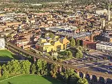 Aerial view of The Hive and surrounding landscape