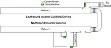 On Sundays, the service to London Waterloo reduces to 2 tph and the services to Dorking and Guildford are reduced to 1 tph each.