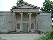 York Cemetery is a cemetery located in the city of York, England. Founded in 1837, it now encompasses 24 acres (97,000 m2) and is owned and administered by The York Cemetery Trust with support of the Friends of York Cemetery. It is situated on Cemetery Road in the Fishergate area of York. It has approximately 28,000 graves and over 17,000 monuments, six of which are Grade II-listed. The chapel is a Grade II* listed building,[1] while the gatehouse, gate and railings are Grade II.[2] The cemetery as a whole is a Grade II* listed park and garden.[3] The architect of the buildings and designer of the grounds was James Pigott Pritchett.