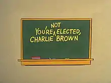 You're Not Elected, Charlie Brown is the eighth prime-time animated TV special produced based upon the popular comic strip Peanuts by Charles M. Schulz, and the 10th one to air.[1] It originally aired on CBS on October 29, 1972, nine days before the 1972 United States presidential election between incumbent Richard Nixon (R-CA) and Senator George McGovern (D-SD). It was the first new Peanuts special to air since the spring of 1971.[2]