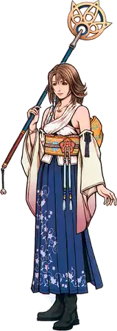 ![]() Yuna in Final Fantasy X, as illustrated by Tetsuya Nomura. | |