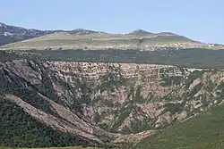 It was known to the ancient Romans as Tedanius. The spring of Zrmanja is located in southern part of Lika under Postak - the southern peak of Pljesevica mountain, and close to south end of Velebit mountain. It is characteristic for its spring located on the bottom of very steep, almost 200 m high funnel shape rock called Misije. It flows southward through the narrow and long arable valley which encircles the southern end of Velebit through a 200-metre-deep canyon, and then turns westwards, reaches Obrovac, and after a few kilometers flows into the Adriatic Sea in the bay named Novigradsko more.