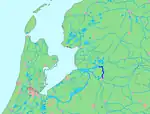 The Zwarte Water ("Black Water") is a river in the Dutch province of Overijssel. It is formed just south of the city of Zwolle when two streams, the Soestwetering and the Nieuwe Wetering, merge. The Zwarte Water then flows north through Zwolle, bends to the northeast, takes in the Vecht near Hasselt and flows past the town of Zwartsluis to discharge itself in the Zwarte Meer ("Black Lake", connected to the IJsselmeer lake) near Genemuiden.