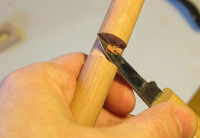 another piece of dowel to the main shaft. The second piece of dowel is carved to a