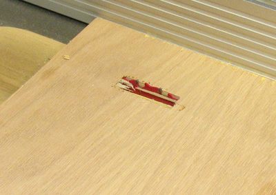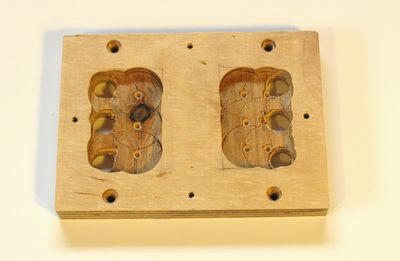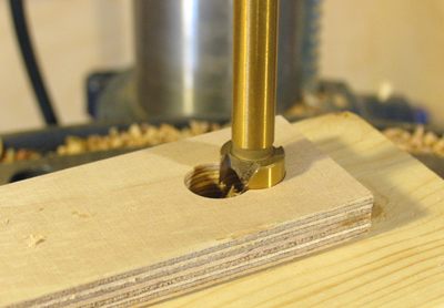 I made two reinforcing plates to glue on either side of it. I made these by drilling