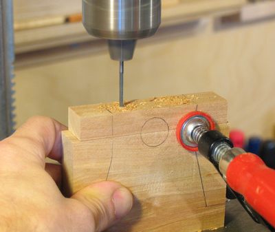 After screwing the top part of the bearing block on, I drilled the shaft hole