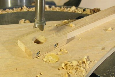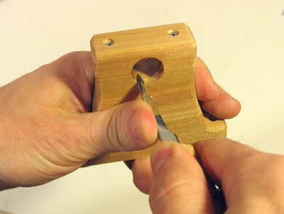 hole on the edge of a piece of plywood, then cutting away half of the hole.
