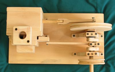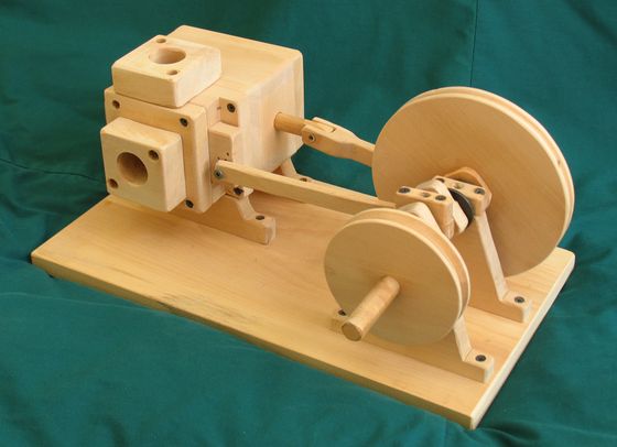 There's something about reciprocating steam engines that is just fascinating. I have even heard it said that every self respecting machinist has at some point built a steam engine. I was never into machining, and I never had access to a machine shop. But I always enjoyed building reciprocating engines out of Lego. These could be run just by blowing into them, or for more speed, by connecting them to a vacuum cleaner. At some point, when I was still a teenager, I decided to try building a bigger air engine out of wood.