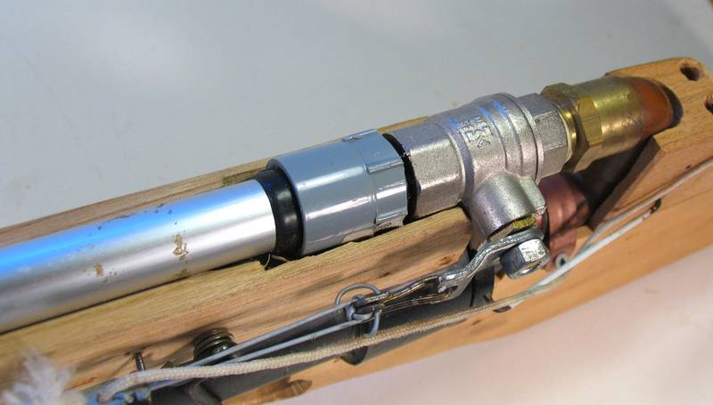 The other end of the barrel mounts using a grey electrical conduit end to the ball valve.