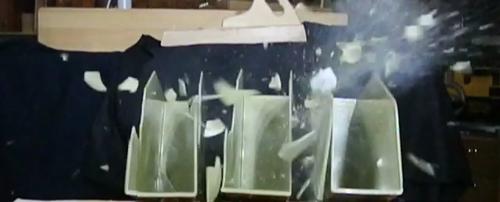 The marble went through all the folder holders. It was less spectacular because the marble didn't break up, so it only made a marble sized hole in most of the folder holders.