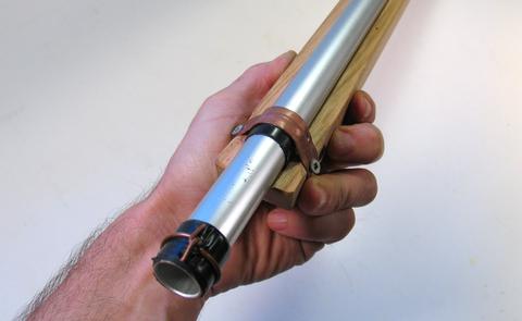 The barrel is a piece of aluminium tubing with just over 5/8" inch (16 mm) inside diameter.