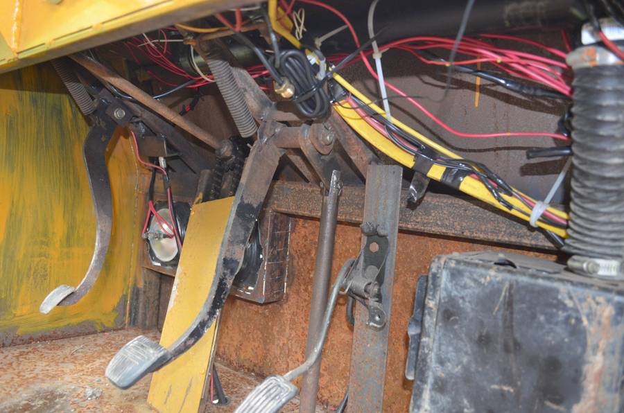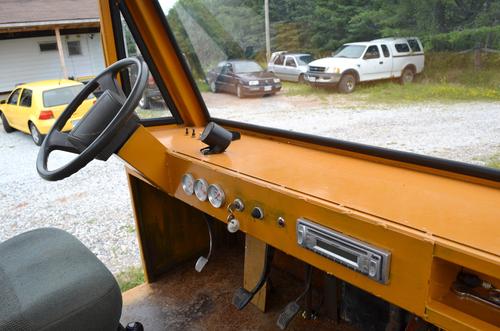 The dashboard is a rather plain affair, but it has a radio, also salvaged