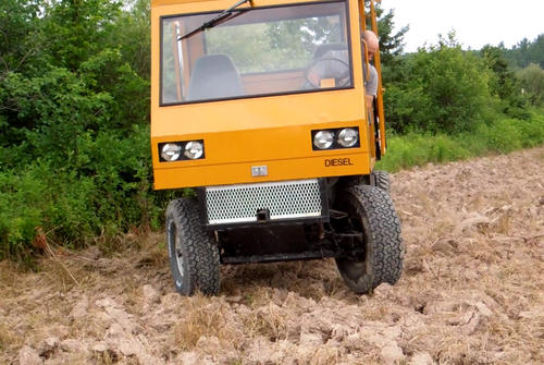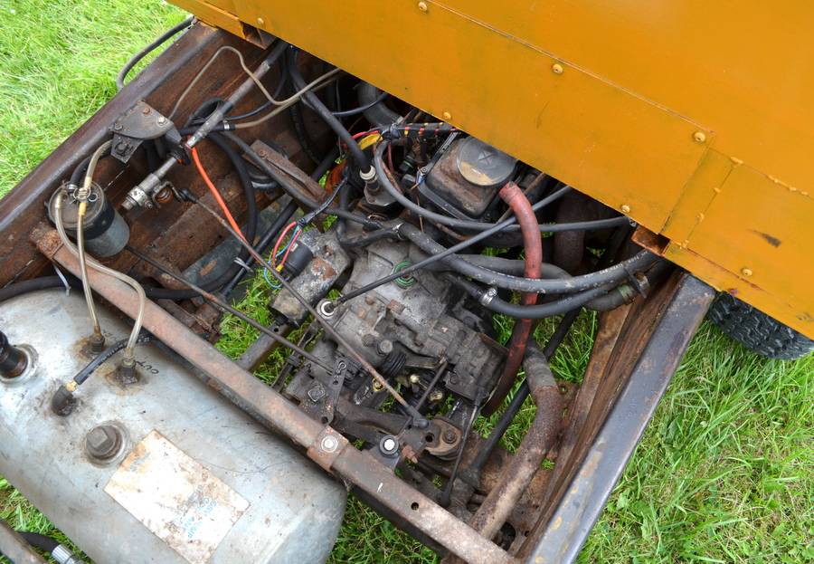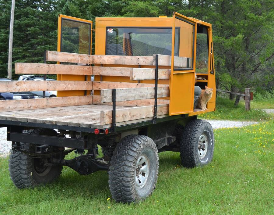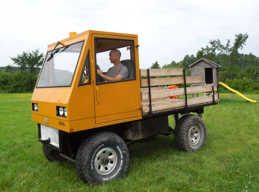 The truck is powered by a turbo diesel engine and gearbox from an old VW Golf.
