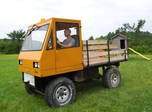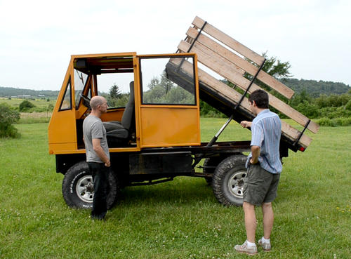 The truck bed tilts for dumping. Handy when hauling firewood.