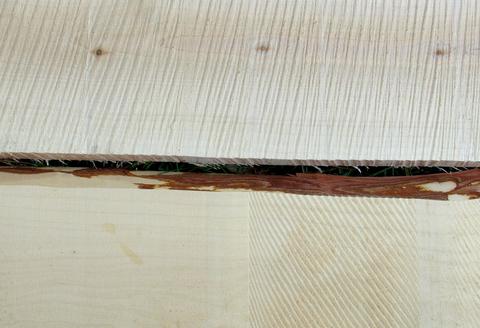 it out of the log, sharpened it in place, then finished the cut (left half of that board).