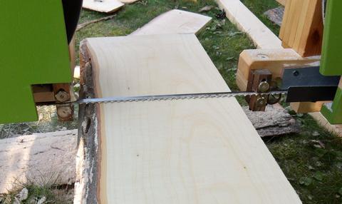 Also note how the log is right up against the right side blade guide. Having it run up against the blade guide helps keep what's left of it in place, and really cuts down on vibrations.