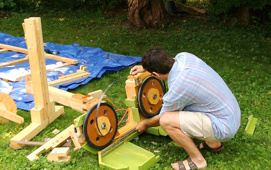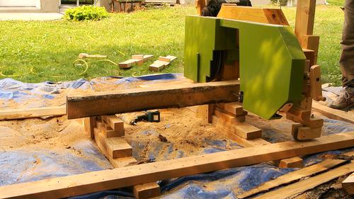 Setting up the mill. I drew up a better log bed in the plans based on previous experience, but I had never actually built it like that myself. So time to test that design.