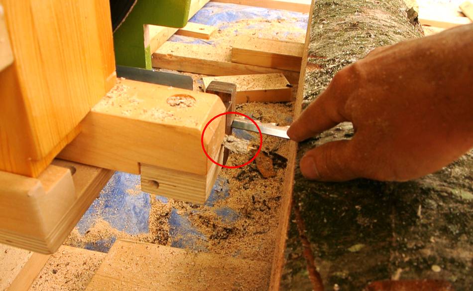 hold it in place, so I could just bring the log up gradually by putting more blocks under it.