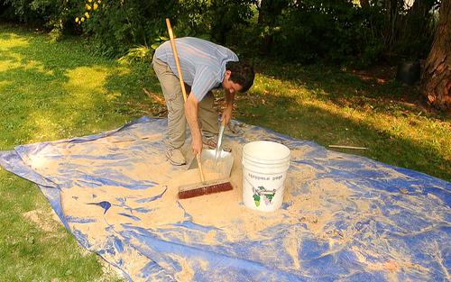 The tarp on the ground really made cleanup easier. Getting sawdust out of the grass