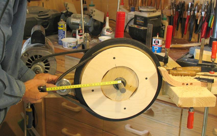 and trying to track the belt on one of the rims of the temporary V-belt pulley