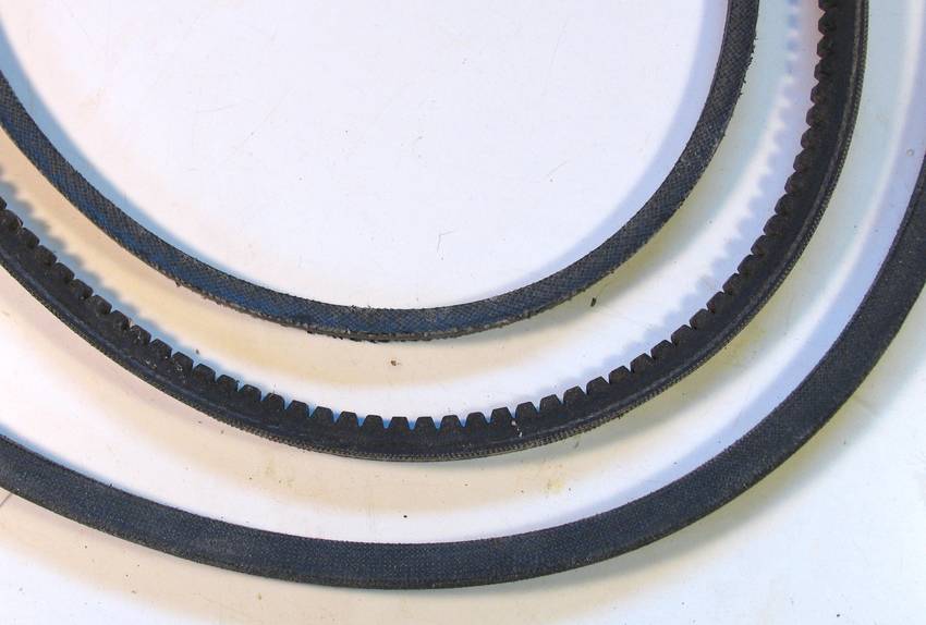 around, and one of the V-belts was more flexible, with teeth on the inside. It also happened