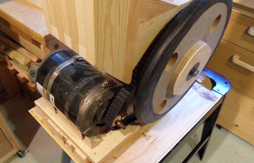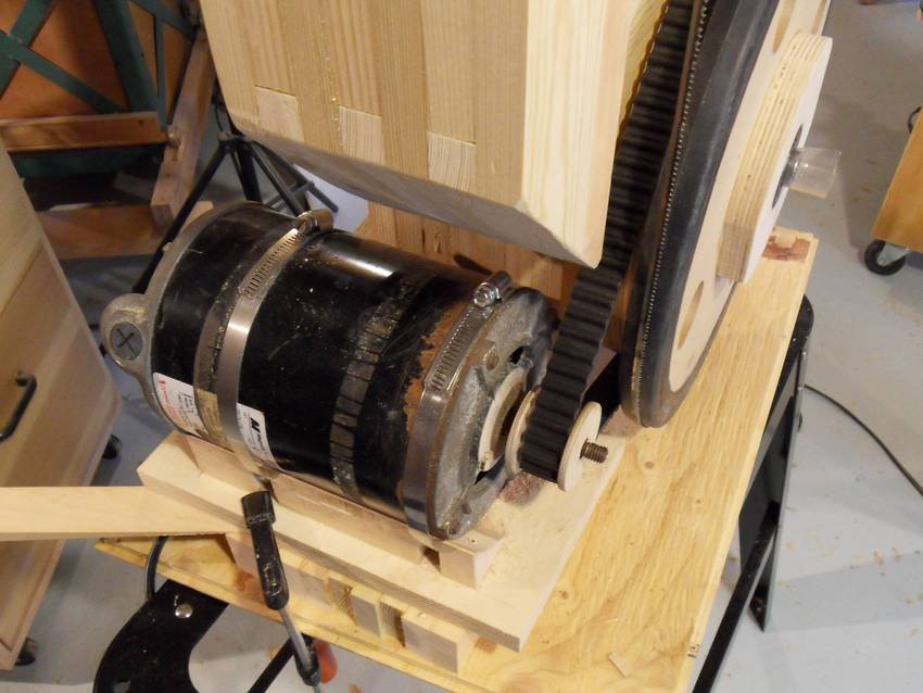 I was also getting worried that with the excessive tension I had to put on the flat belt, that I might damage the motor bearings, or, worse yet, cause metal fatigue in the thin 1/2" motor shaft.