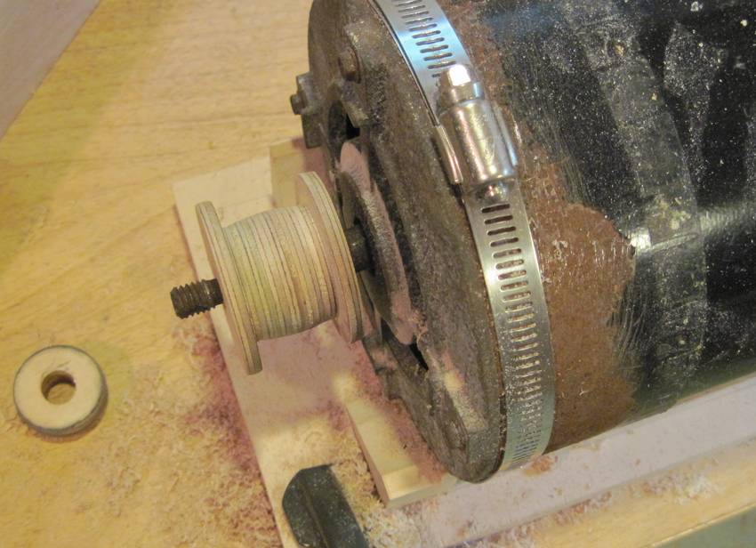 So I glued several pieces of plywood together and rammed that onto the motor.