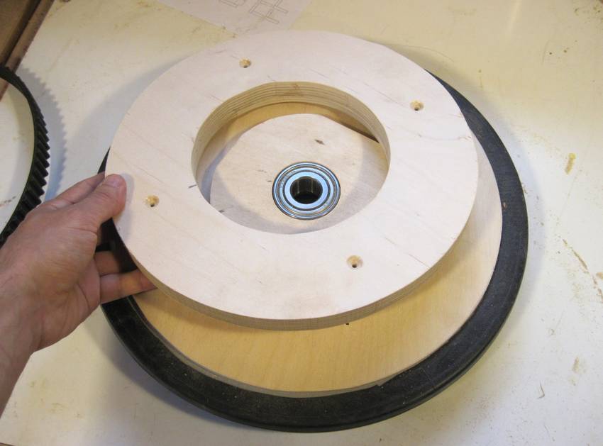 I made a large ring-shaped pulley to attach to the wheel. This is only screwed in