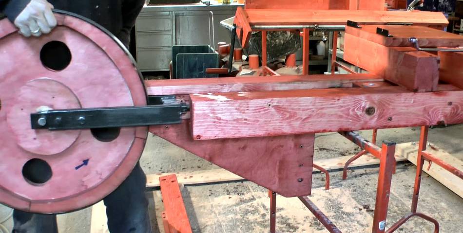 moving the log on a platform on tracks in my shop.